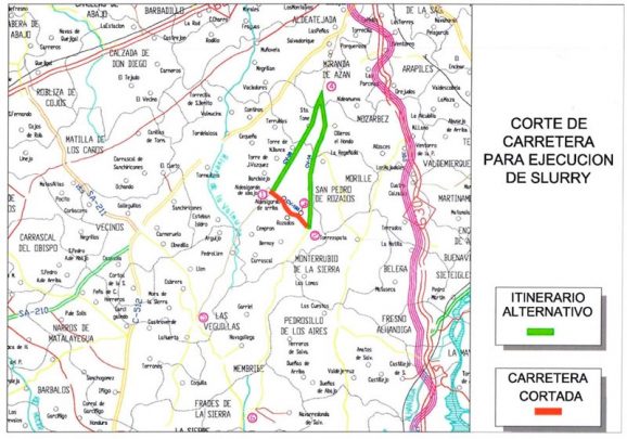 Para los desplazamientos entre ambos municipios se recomienda el itinerario alternativo a través del municipio de Miranda de Azán.
