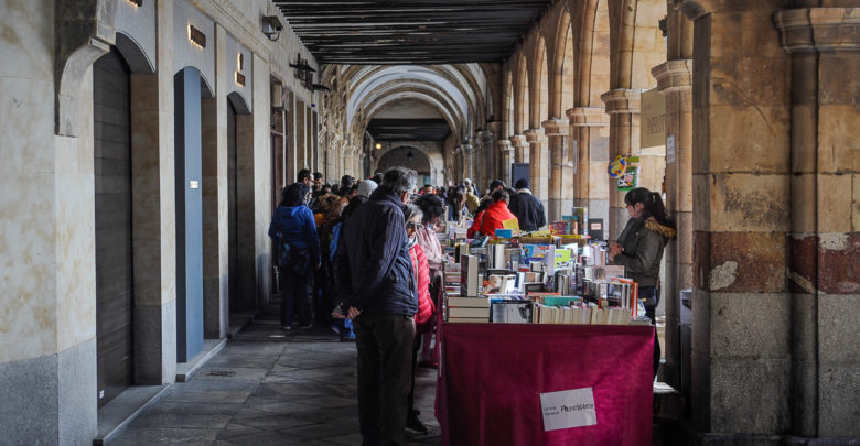 Los portales de la Plaza Mayor, esos refugios del sol y la lluvia, que cobijaron en numerosas ocasiones al autor gallego, son este martes el escenario de libreros que aconsejan, guían y encaminan a lectores que buscan emociones, aventuras, distracción, entretenimiento u otros puntos de vista. Todo esto y mucho más está al alcance de tu mano.