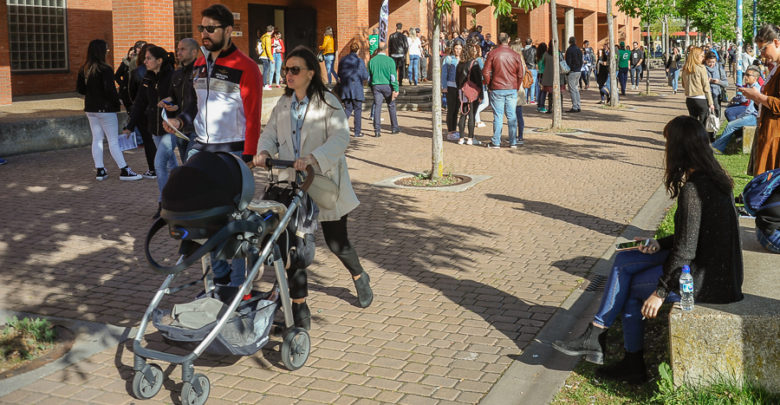 Así, se han visto numerosos carritos de bebés y se ha escuchado el llanto de los pequeños, mientras uno de sus progenitores acudía a realizar la prueba y el otro se quedaba paseando por el recinto universitario.