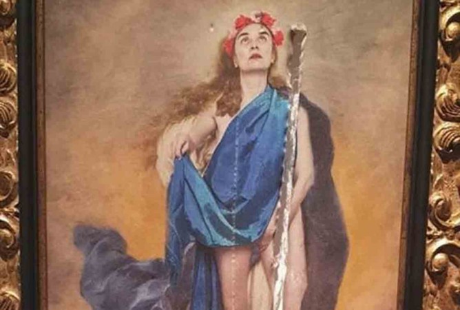 Charo Corrales, la artista del lienzo, explicó a Infolibre que no es una Virgen, es «un autorretrato».