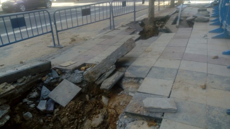 Los testigos señalaron que se elevaba la acera y creían que iba a reventarse, los socavones que se pueden apreciar un día después, son la prueba de la gran avería.