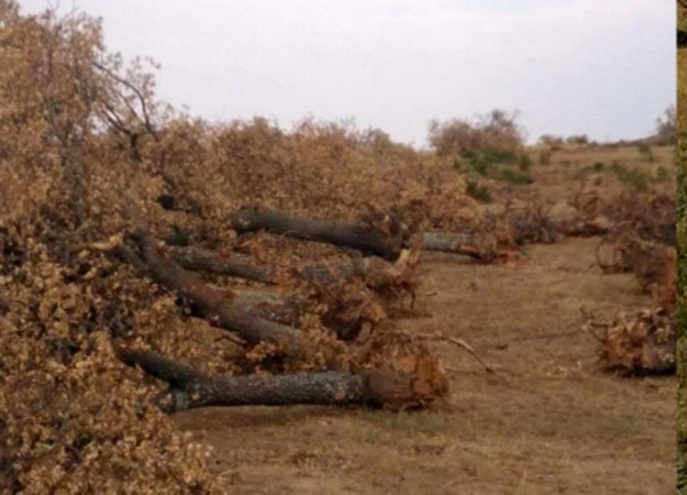 Los robles están siendo arrancados, junto con otras especies arbóreas y de matorral, por una empresa multinacional, en la finca Saceo de propiedad municipal. «Estos son los pasos previos en la construcción de la planta solar fotovoltaica ‘FV Guleva-Palacio del Arzobispo I’.