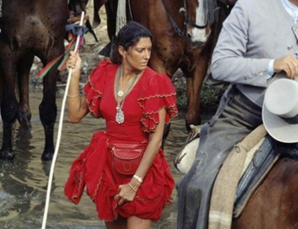 Francisco Rivera ha elegido una imagen en la que se ve a Carmina haciendo el Camino del Rocío, al que no faltaba ningún año, justo cuando atravesaba el río Quema.