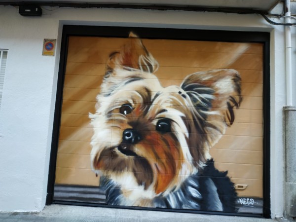 Esta obra que firma Nego tiene una historia muy especial. Los dueños del ‘lienzo’, digo trapa, tienen un perro, Lucas, y en su honor está realizada esta pintura.