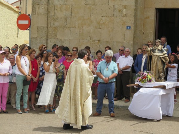 Decenas de vecinos acompañaron al santo en la procesión por las calles del municipio, a continuación disfrutaron con los magníficos bailes charros y brindaron con sangría y endulzaron la mañana con unas perrunillas y mantecados de la localidad.