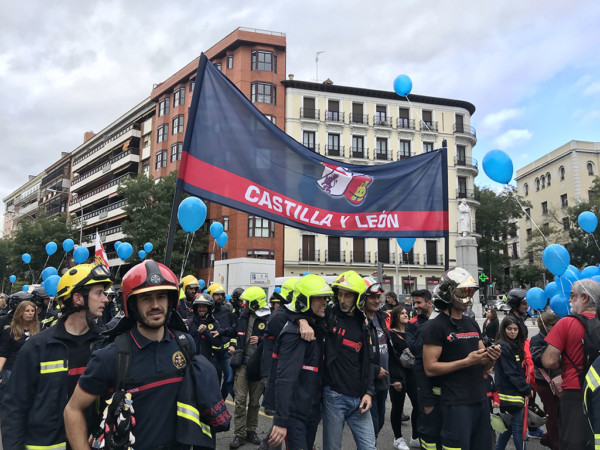 Los bomberos de Castilla y León se sumaron este sábado a la segunda manifestación que organizó en Madrid la plataforma ‘Profesionales. Coordinadora Unitaria de Bomberos’. El objetivo se centró en reivindicar una normativa que siente las bases comunes de la prestación del servicio mediante los distintos aspectos de prevención, extinción de incendios y salvamento (SPEIS) de las administraciones públicas de todo el Estado.