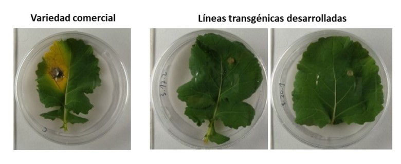 Los resultados obtenidos han sido publicados en un artículo científico en la prestigiosa revista Frontiers in Plant Science. Hemos podido observar cómo estas plantas transgénicas son totalmente resistentes al ataque del patógeno en sus hojas, gracias a la presencia del gen Thkel1 en su genoma.