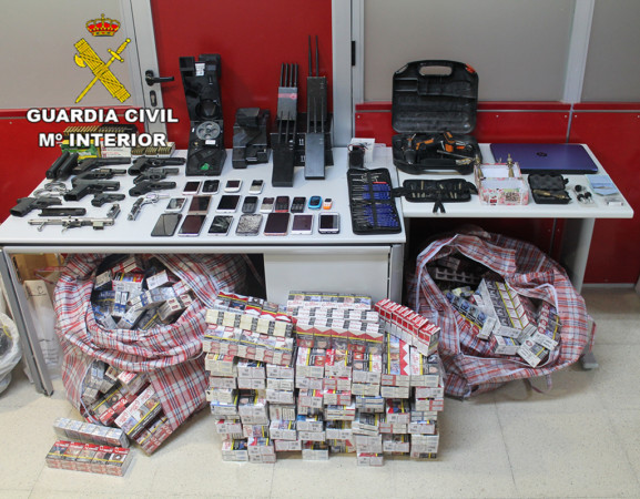 Durante la práctica de los registros domiciliarios se han recuperado joyas y efectos procedentes de los robos, armas de fuego, dinero en metálico y 653 grs. de resina de hachís.