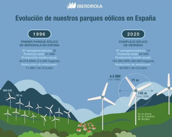 Iberdrola construirá un parque eólico en Burgos, denominado Complejo Herrera, que contará con 63 megavatios (MW) de capacidad instalada, distribuida entre un total de 14 turbinas, y que incorporará el modelo de aerogenerador terrestre más potente del mercado, conocido como SG 4.5-145, de 4,5 megavatios de potencia unitaria, casi siete veces superior a la de los primeros instalados en España hace más de dos décadas, y que han sido adjudicados a Siemens Gamesa. De esta forma, la compañía energética continúa con su apuesta por las energías limpias en España, con tecnologías de vanguardia para proporcionar “más competitividad y sostenibilidad a sus proyectos renovables”.