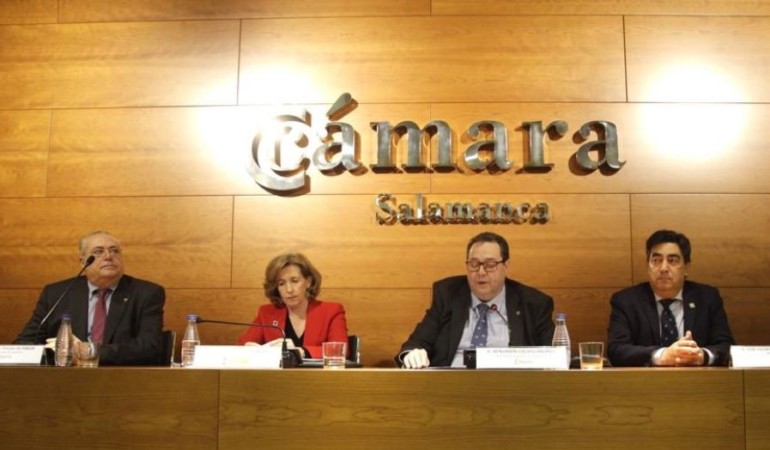 De la Cueva asistió al centro cameral salmantino para “tener la oportunidad de estar con los empresarios de Salamanca, ver sus inquietudes y contarles la política que planteamos desde el Gobierno para los próximos años”, puesto que, en opinión de la secretaria de Estado de Economía, es “esencial conocer de primera mano cómo lo ven las empresas” para “tratar de tener un país mejor”, puesto que son “las que crean empleo y contribuyen a desarrollar el país y la región”.