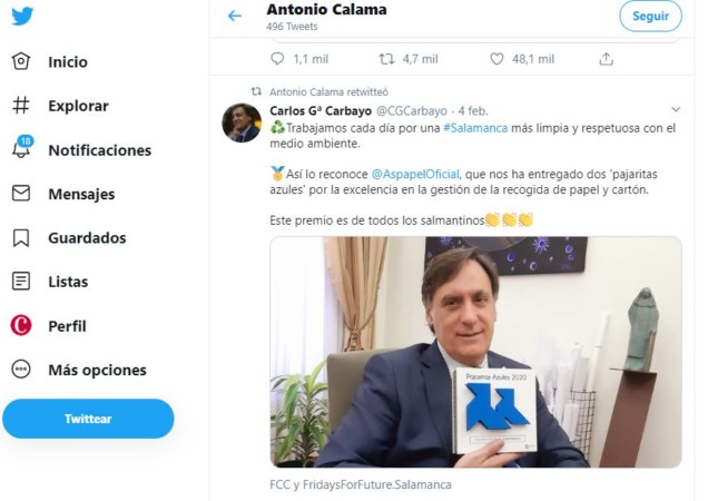 Una red de cuentas falsas en la red social Twitter se dedicaban a favorecer la imagen del alcalde Carlos García Carbayo y distorsionar el debate público. Se trata de una veintena de cuentas falsas, creadas en agosto de 2019 y supuestamente gestionadas por personal de su entorno gabinete de prensa y propaganda, que enviaban entre 40 y 50 tuits diarios, según ha denunciado este jueves el portavoz socialista en el Ayuntamiento, José Luis Mateos en el Ayuntamiento de Salamanca en la que ha denunciado públicamente.