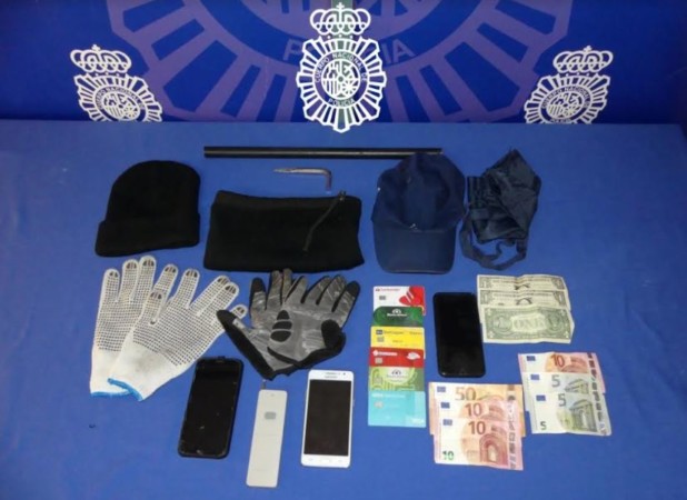 Los agentes intervinieron en su poder tarjetas bancarias, teléfonos móviles, guantes, gorros, bragas y una llave exagonal, tipo Allen, con uno de sus extremos afilado, además de 70 euros en diferentes billetes y tres dólares americanos.