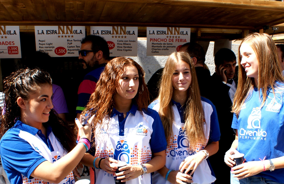 Las jugadoras del Avenida acudieron este sábado a la caseta de uno de sus patrocinadores, ubicada en la plaza de Anaya.
