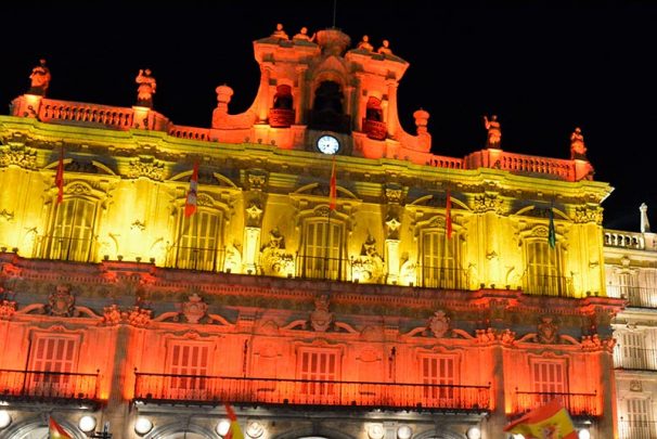 La fuente de la Puerta de Zamora se ilumina de azul para apoyar a las jugadoras del Avenida y lucirá los colores de la bandera española en la fachada del Ayuntamiento, el motivo: Salamanca es la sede de la Copa de la Reina de baloncesto que se disputa del 5 al 8 de marzo en el multiusos Sánchez Paraíso.