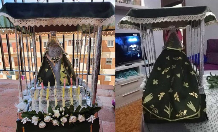 La idea surgió de una de sus vecinas, Alicia, gran aficionada a las manualidades que ha logrado recrear el paso de la Virgen de la Esperanza.