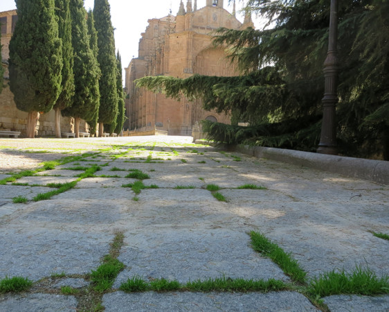 Es por esto, que en la calle Zamora, una de las más concurridas de la ciudad, ha comenzado a crecer la hierba, al igual que en la plaza del Concilio de Trento, las hordas de turista, que extasiados miraban el Convento de San Esteban, han desaparecido y allí también está haciendo aparición la primavera con todo su poderío, como en la calle Marquesa de Almanza o Toro, al lado de la iglesia de San Juan de Sahagún, donde hasta hace unas semanas se podía ver a los jóvenes en sus monopatines.