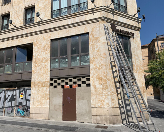 [dropcap]H[/dropcap]ace 13 años –fue en 2007- cuando derribaron el Gran Hotel de Salamanca en la plaza Poeta Iglesias. Después se levantó un bloque bautizado como ‘Edificio Gran Hotel’. Ahora, se está acondicionando uno de los locales del enorme edificio que abarca una manzana, para convertirlo en un establecimiento dedicado a la comercialización de productos ibéricos, entre la plaza del Mercado y la del Ángel.