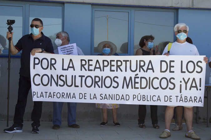 ICAL. Sánchez, que participó en una concentración para solicitar la reapertura de los consultorios médicos celebrada en Tábara, Zamora, consideró que estos centros tendrían que estar habilitados para atender, no solo a los mayores “vulnerables” sino también a la población flotante que “va a llenar de gente, por suerte, este verano nuestros municipios”.