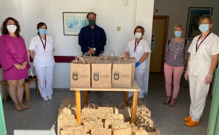 Una representación de la Corporación municipal, encabezada por el alcalde Roberto Martín, ha entregado a la Residencia de Guijuelo los detalles que desde el Ayuntamiento se está repartiendo entre los mayores de la localidad.