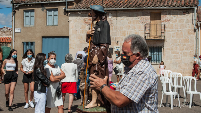 Este año, los vecinos no han podido coger en andas al santo patrón, con el que recorrían las calles de la villa, pero sí han acompañado la imagen en la Plaza. Así, en confraternidad, guardando las medidas de seguridad e higiene que precisan los tiempos, los valdelosinos y valdelosinas han celebrado la festividad de su patrón.
