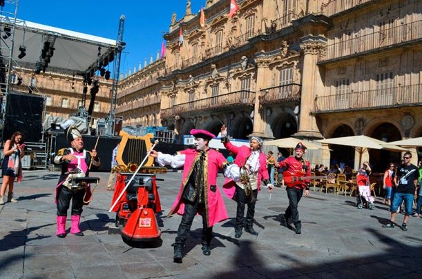 En el ecuador de este festival callejero, los salmantinos y forasteros han tenido la suerte de encontrarse con Les Enjoliveurs, la compañía francesa que utilizó la Plaza Mayor para comenzar con su espectáculo Sforzando, una propuesta en la que la música clásica se une con el rock. Es una ópera de calle en la que los personajes de una orquesta fuera de tiempo se juntan, se revelan y se reencuentran. Y todo ello, con el regocijo del sorprendido viandante.