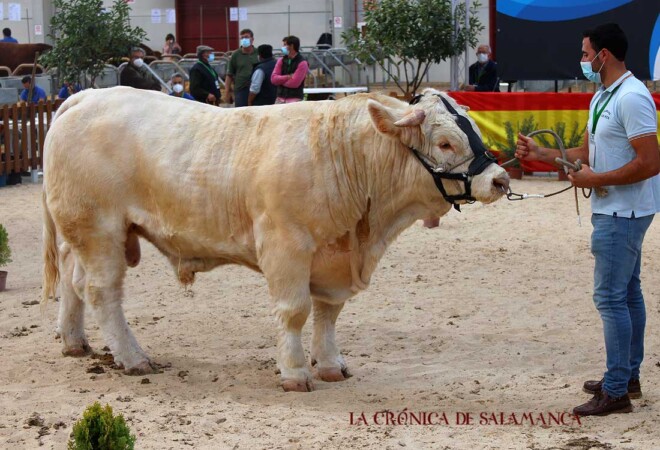 Descafeinada subasta de ganado de Salamanca para la raza charolesa, con nueve animales que sí hallaron comprador y otros nueve que quedaron desiertos.