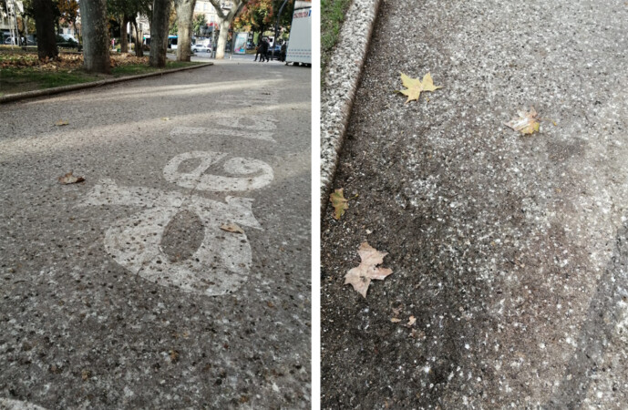 Los excrementos de estorninos, palomas y demás aves que viven en los árboles de la zona verde dejan casi intransitables los caminos de La Alamedilla.