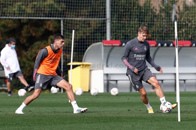 Los jugadores comenzaron con un calentamiento y posteriormente llevaron a cabo trabajo físico, ejercicios de circulación de balón y presión, partidos en un campo de reducidas dimensiones y terminaron con remates a portería. Benzema compaginó trabajo sobre el césped con balón y en el gimnasio, mientras que Odriozola y Valverde se ejercitaron en el interior de las instalaciones».