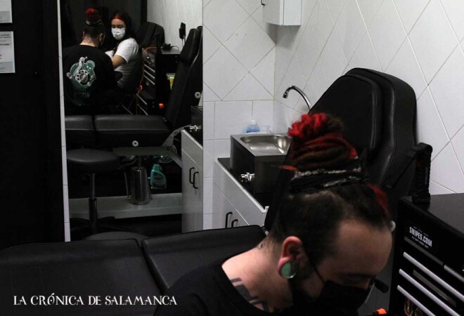 Asimismo, el cierre de la hostelería también les ha tocado de cerca. «Cuando cerró la hostelería, hemos tenido tardes en las que no hemos hecho nada. Salamanca se mueve mucho por la gente joven y los bares, pero si cierran, se quedan en caso y ya hacen allí lo que sea. Si el joven no sale, no gasta y Salamanca se hunde. Eso sí, los jóvenes no han tenido miedo a venir a hacerse un tatuaje, pero hemos tenido a una mujer de 71 años, que vivía más con miedo por si le pasaba algo, pero nada más. La mayoría de clientes está entre los 18 y los 30 años, luego hay alguno más mayor de más de 40 o 50, pero la mayor ha sido una mujer de 71″, relata Juan Carlos Escribano.