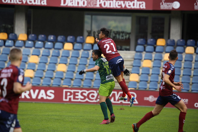 El Pontevedra era dueño de la pelota por completo y fue Rufo el que lo intentó en primera instancia con un disparo que se fue por encima de la meta de Salcedo y con un continuo bombardeo de centros laterales y acoso hacia el área ‘verde’. Rufo volvió a tener otra mucho más clara, después de un gran centro de Álex González, que remató solo el ‘9’ del Pontevedra en un nuevo error de los centrales.