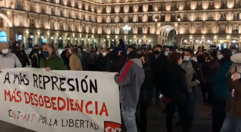Varias decenas de personas acudieron a la Plaza Mayor donde se concentraron para protestar por el encarcelamiento del rapero Pablo Hasél.