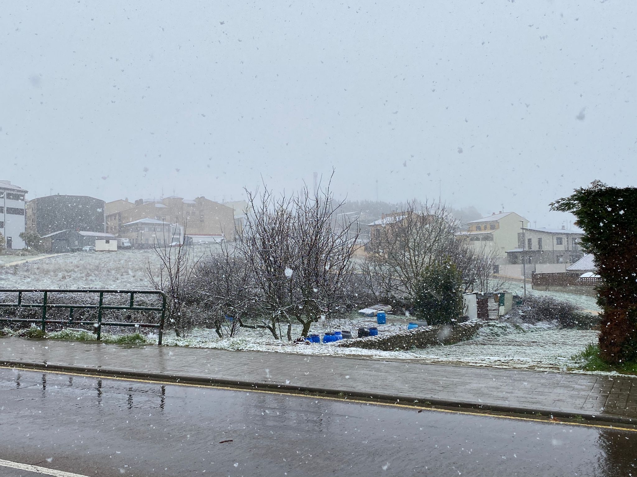 Nieva en Guijuelo este domingo, donde la Delegación del Gobierno en Castilla y León activa la alerta amarilla por nieve, lluvias y viento en Castilla y León por el paso de la borrasca ‘Karim’