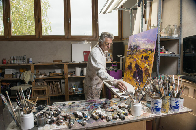 Quitando los primeros días, cuando estaba preocupado por mi familia, que dejé de pintar y no tenía ánimos de entrar en el estudio, no ha habido cambios. Curiosamente, aunque parezca mentira, he tenido más intensidad de trabajo que en circunstancias normales. Es lógico, estás confinado, no puedes salir de casa, tienes el estudio aquí, por lo que he dedicado más horas a pintar de lo habitual. La influencia ha sido para trabajar más.