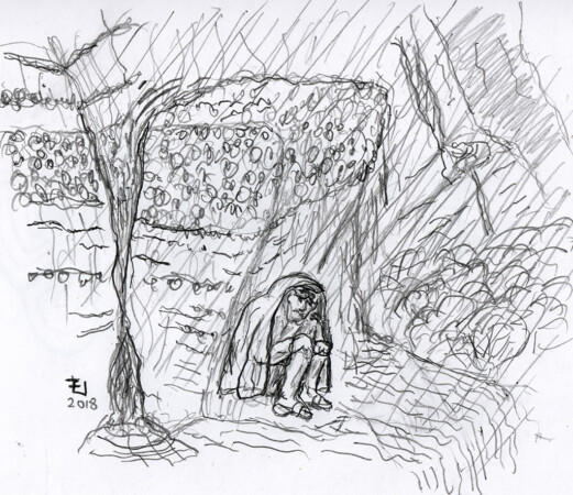 La nueva situación, al sentirla irreversible, produjo en Lucas un efecto singular. Se tornó más arisco y violento con todos, que por ello le daban la espalda. No lo querían como compañero en el trabajo de la iglesia, en la que habían comenzado las basas del ábside. Y abandonó su puesto para subsistir recogiendo plantas silvestres. Su desarreglo era tal que parecía una fiera, con las ropas rotas, largas barbas y cabellos, mirada ausente…