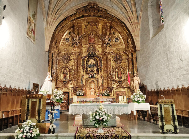 La iglesia de Nuestra Señora del Castillo, impertérrita, sólida y poderosa, acaba siendo siempre el lugar del encuentro. Cada vez con menos gente, cada vez más envejecida. Lucía esplendorosa una vez más. Tan solo la luz primaveral de la Pascua que con dificultad se abría camino entre los pequeños ventanales, mortecina por las nubes que cerraban el cielo meseteño a la hora ya de vísperas, dejaba un poso de tristeza, la obligada por las circunstancias. En cambio la Virgen de la Encina, patrona dichosa de Macotera, vestía aún el manto de la alegría, el blanco inmaculado que no pudo mostrar en el encuentro con el Resucitado, porque la plaza este año no podía congregar público, ni los devotos cargar con las andas, ni el pueblo hacer ostentación de júbilo pese al repique de las campanas.