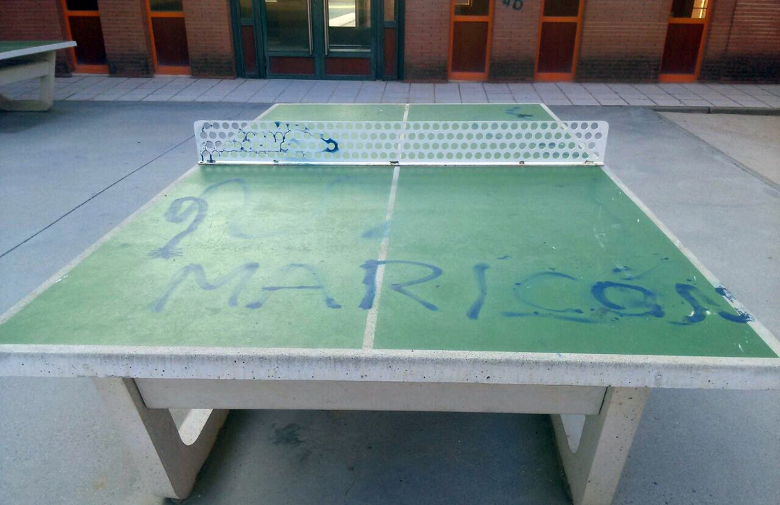 La concejala de UPyD en Carbajosa, Águeda Arranz, denunció este sábado la existencia de una pintada homófoba en un colegio público de la localidad, que llevaba puesta en una mesa de ping pong desde junio.