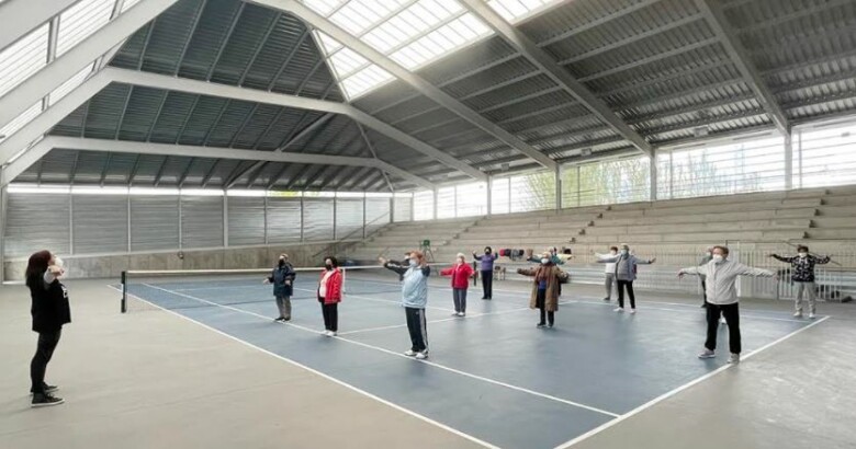 La gimnasia para mayores se celebrará al aire libre y hasta el día 17 de junio todos los martes y jueves, de 12,30 a 13,30 horas. Las clases se impartirán en el recinto ferial del municipio, aunque hoy, debido al mal tiempo, se ha impartido en la pista de tenis cubierta.