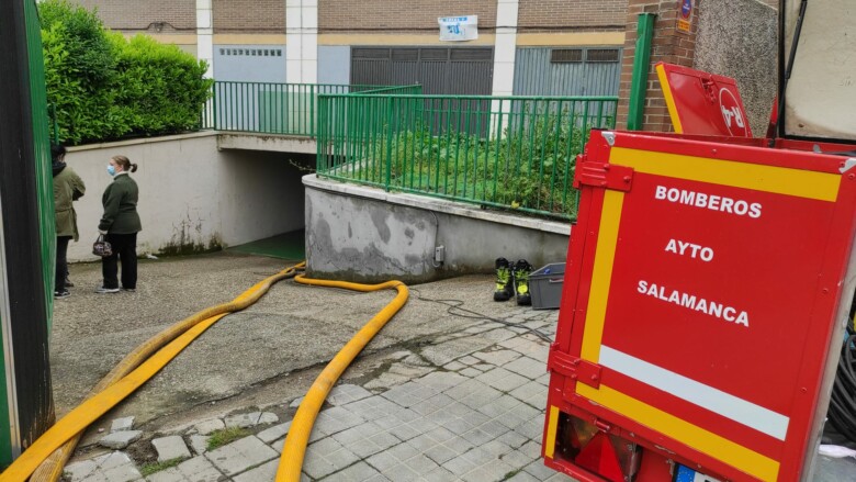 Los Bomberos de Salamanca tuvieron que intervenir para achicar el agua en uno de los aparcamientos subterráneos de Ignacio Zuloaga, donde habrá que evaluar los daños dl agua en los vehículos estacionados.