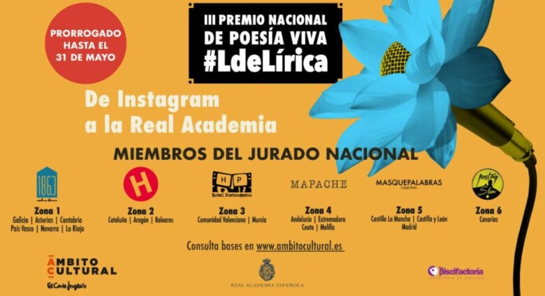 Ámbito Cultural de El Corte Inglés lanza el “III Premio Nacional de Poesía Viva #LDeLírica” con el fin de encontrar nuevos talentos líricos. El formato del concurso combina el uso de las redes sociales con las actuaciones en directo en las salas de Ámbito Cultural a nivel nacional. Las personas que quieran participar solo tienen que subir un vídeo, hasta el 31 de mayo, recitando ellos mismos un poema de obra propia de máximo un minuto de duración a Instagram con el hashtag #PoesíaViva2021. Se premiará la calidad del contenido, el buen uso de los recursos de la oralidad y la puesta en escena.