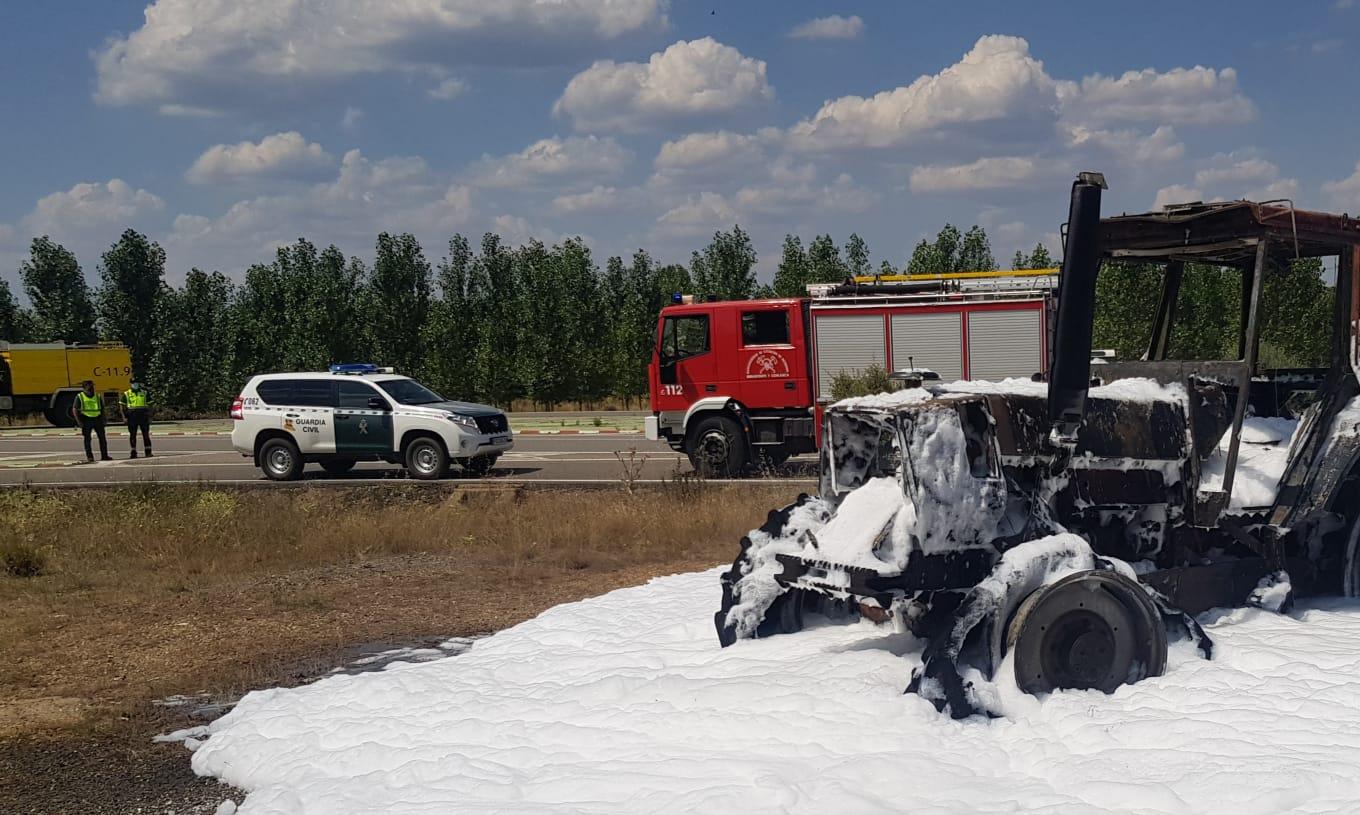 Un tractor que circulaba por la carretera N-525, a la altura del punto kilométrico 41,800, entre las localidades de Vega de Tera y Junquera de Tera (Zamora) empezó hoy a arder, por motivos que no han sido descritos.