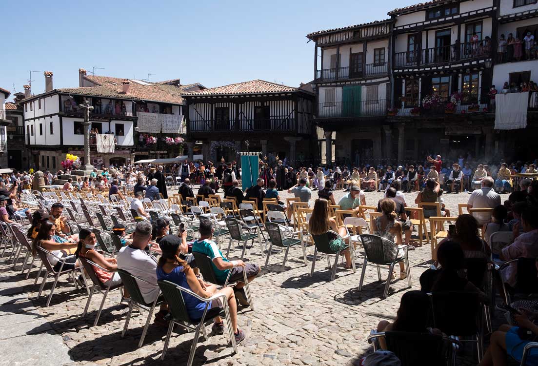 Dos años. La Alberca ha tenido que esperar dos años para volver a acoger en su Plaza Mayor su tradicional Ofertorio en honor a la Virgen de la Asunción tras la suspensión de esta Fiesta de Interés Turístico Nacional en 2020 por la pandemia.