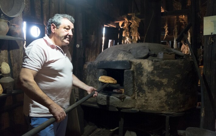 Entrar y respirar los olores del pienso y de los restos de las herramientas del campo que aún se almacenan en la entrada. Escuchar el crujido de las escaleras de madera que separan cada piso, cada vez más empinadas. Admirar los colores de los recuerdos: paños antiguos con el tradicional bordado serrano, fotografías de los abuelos en blanco y negro y de una niñez muy feliz.