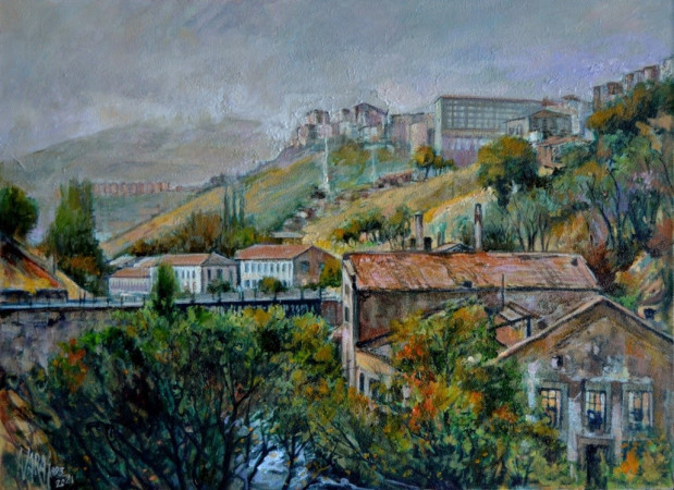Fábrica textil Béjar. Autor: Antonio Varas. Óleo sobre lienzo. Medidas 100x73cm. Fecha: 2004-2020.