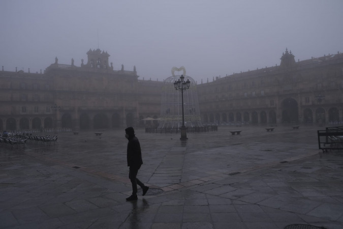 Salamanca amaneció este domingo arropada por la niebla. Sus calles casi vacías a primera hora de la mañana dejaban ver el binomio que conforman la niebla y la monumentalidad de Salamanca, ese velo fino que deja entrever la belleza arquitectónica de la ciudad chara.