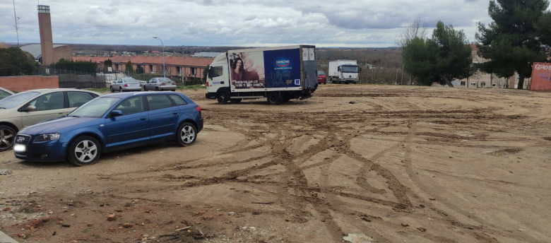 Un terreno de propiedad municipal que no está vallado y donde aparcan vehículos, cuando llueve, la tierra se convierte en un barrizal y los coches al salir de ahí, embarran las aceras y las calles por las que caminan los vecinos que viven en esta zona y todos aquellos que pasean por la Aldehuela o vera del Tormes.