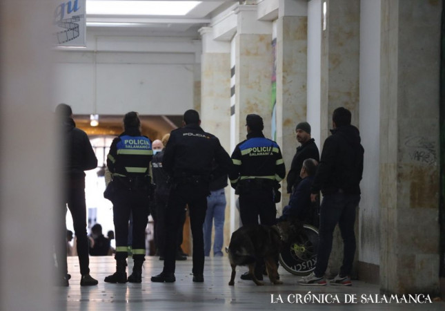 Agentes de las policías Local y Nacional llevaron a cabo este sábado por la mañana un control en el pasaje de la Plaza Mayor, ante la puerta del after hours más popular de Salamanca.