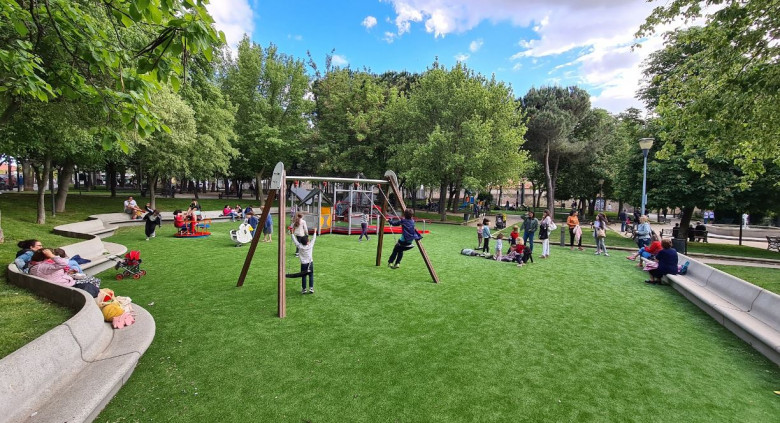 En concreto, se han instalado dos nuevos juegos, una cama elástica y un carrusel dinámico, que se suman a los elementos accesibles ya disponibles en la zona, y se ha colocado un césped sintético antiestático sobre el pavimento amortiguante existente y en zonas donde no lo había, «de manera que mejore la seguridad de los niños», amén de darle a ganar a la empresa del césped artificial, que está forrando la ciudad de este material.