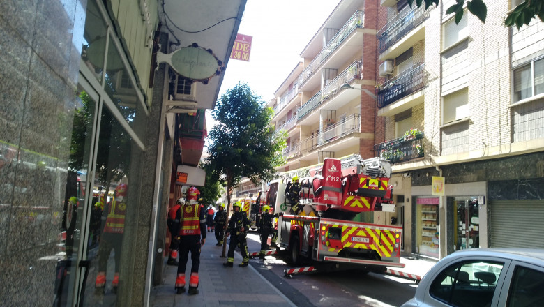 Los bomberos tuvieron que utilizar la escalera, porque el humo se había producido en la parte alta del edificio. Una vez en el tejado, constataron que era acumulación de humo. Afortunadamente, todo ha quedado en un susto.