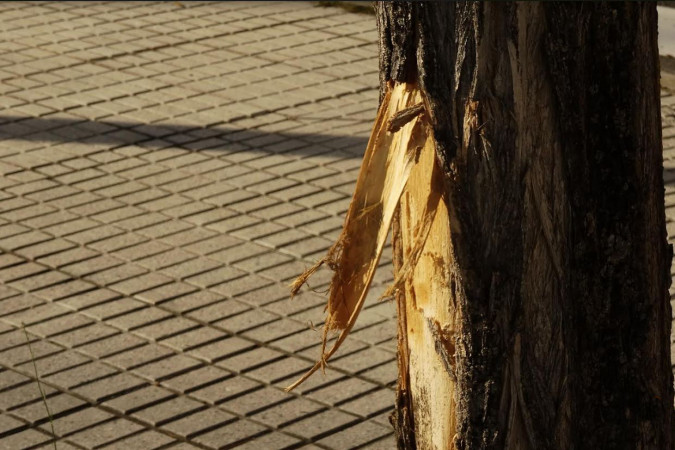 El uso de maquinaria para la limpieza de la calle produce daños frecuentes como el que se puede observar en la imagen, donde un tronco de un árbol está dañado por la ‘caricia’ innecesaria de una máquina limpiadora.