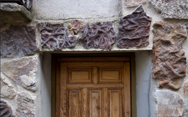 Estos fósiles estaban situados en la parte superior de las montañas que rodean el pueblo y, pesando que eran raíces, los empezaron a incluir en las fachadas. Al principio se empleaban de uno en uno como escudos sobre las puertas, y más adelante se juntaban varios fósiles y se colocaban a modo de curiosa decoración.